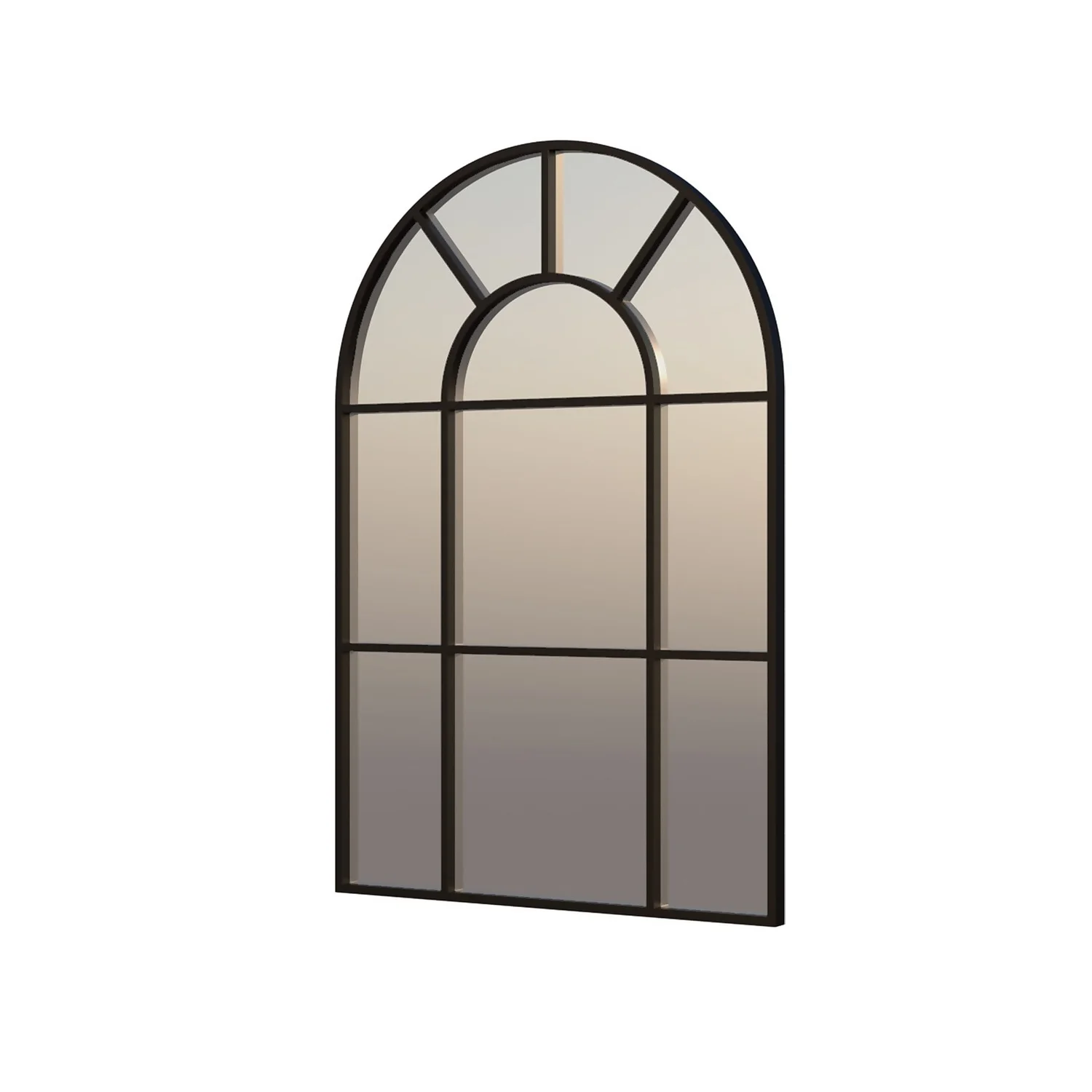 The Homebase Window Pane Iron Arch Mirror is the perfect addition to any room in your home. Featuring a 50x76cm arch shaped black metal frame with segregated black window pane design, this mirror gives a modern feel to any room while providing the illusion of more space.