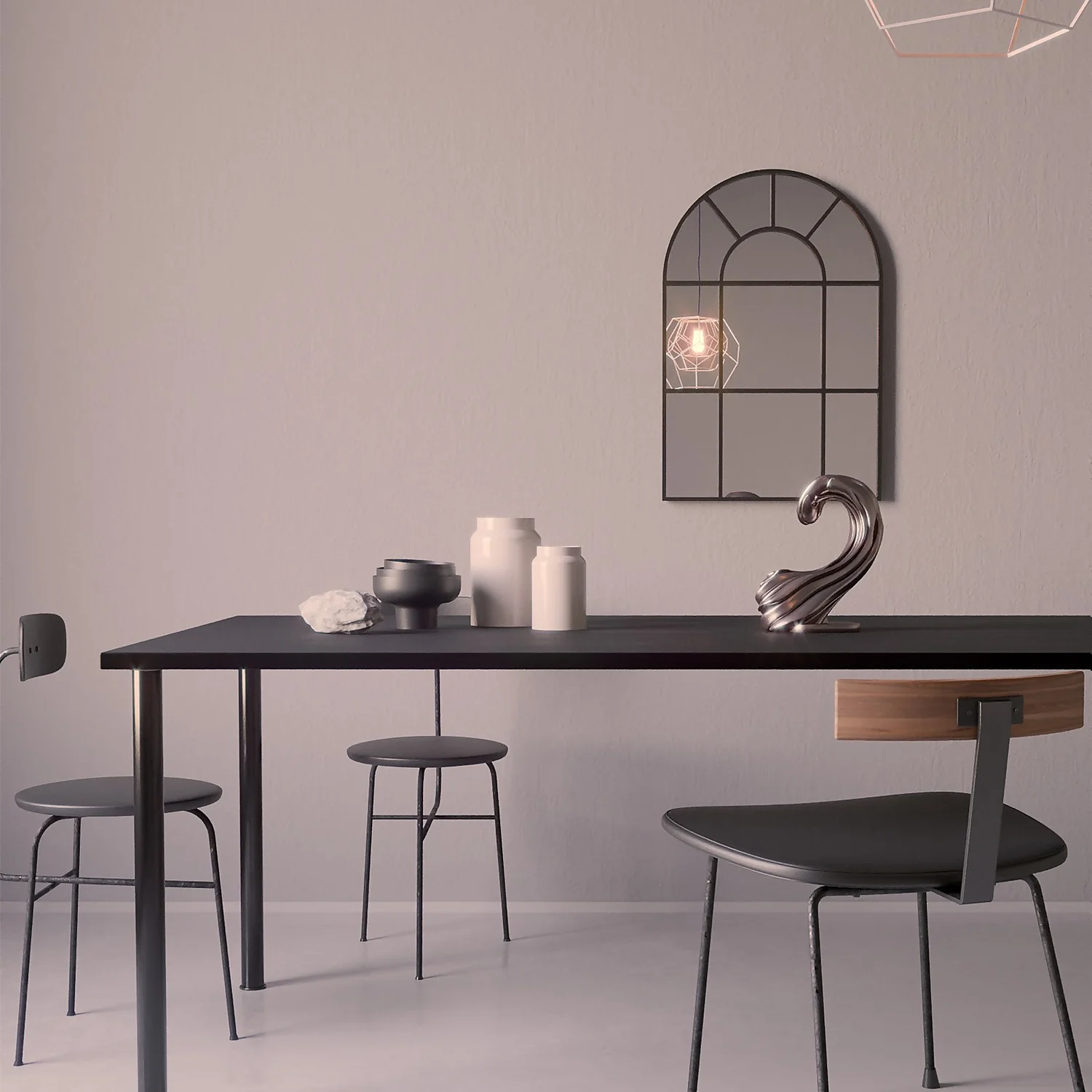 - Arch-shaped black metal frame