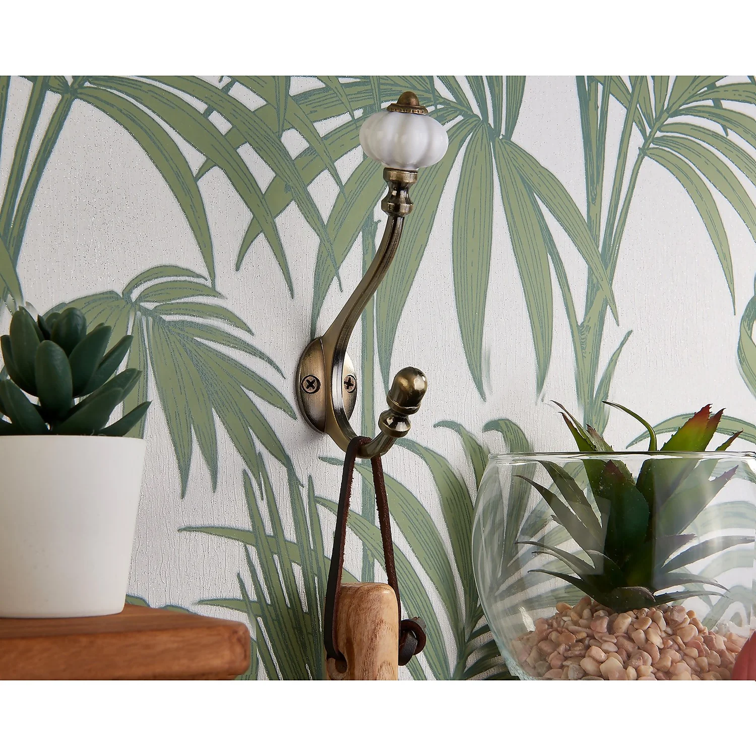 Add a touch of rustic style to your home wit this double hook in an antique brass finish with decorative ceramic top.