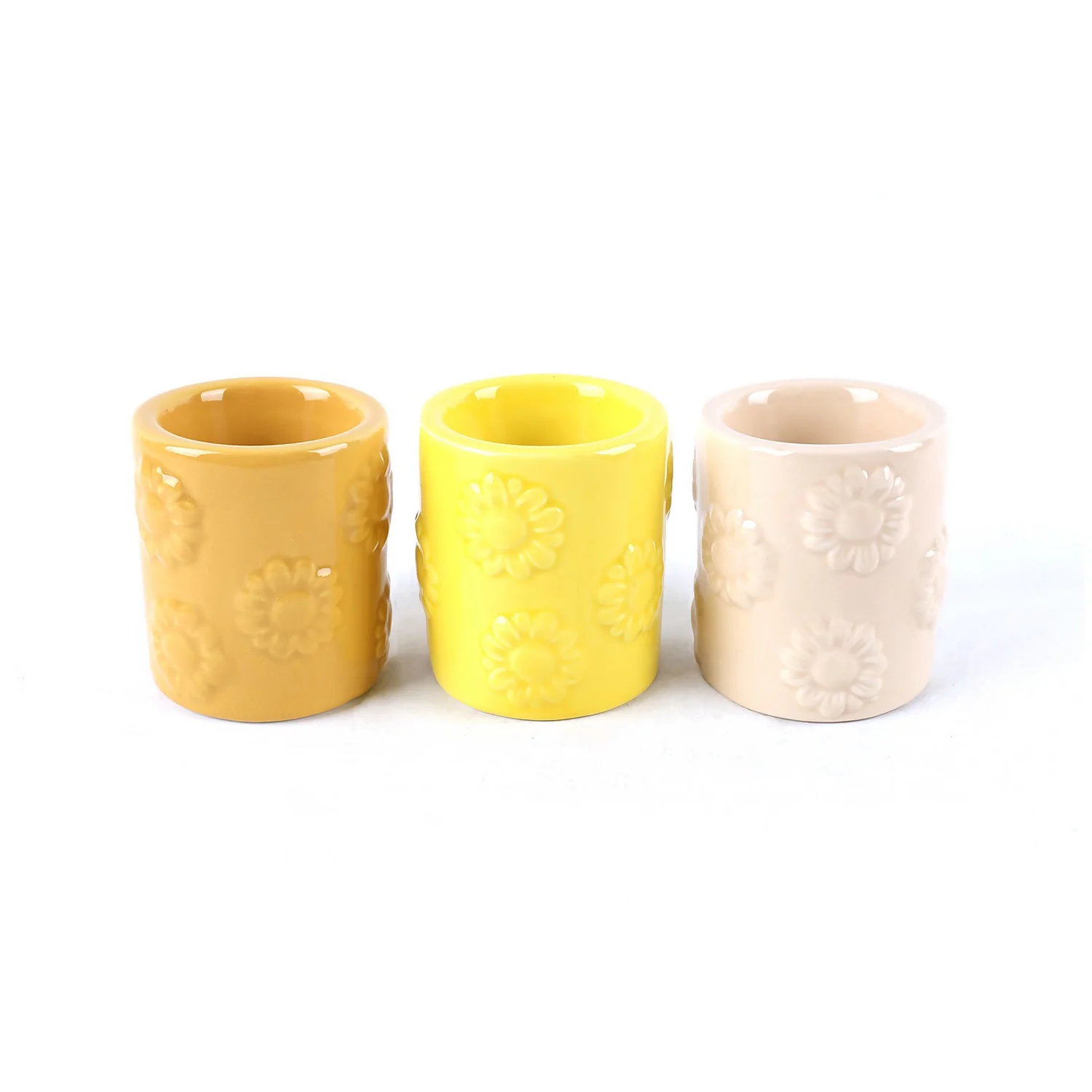 A beautiful trio of ceramic tealight holders with a flower pattern, a great decorative piece to brighten up any room.
