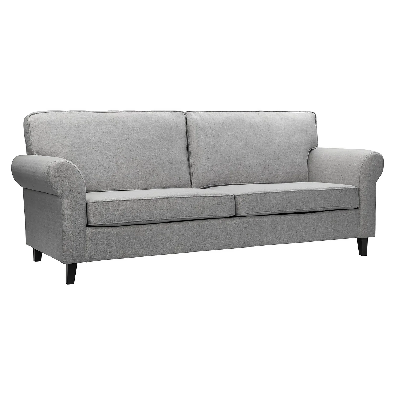 Make the everyday a little more elegant with Linea. Simple yet stylish, this grey 3 seater sofa has a traditional design complete with classic scroll armrests and tapered dark wood legs. The foam and fibre filled cushions are upholstered in woven fabric for added comfort.