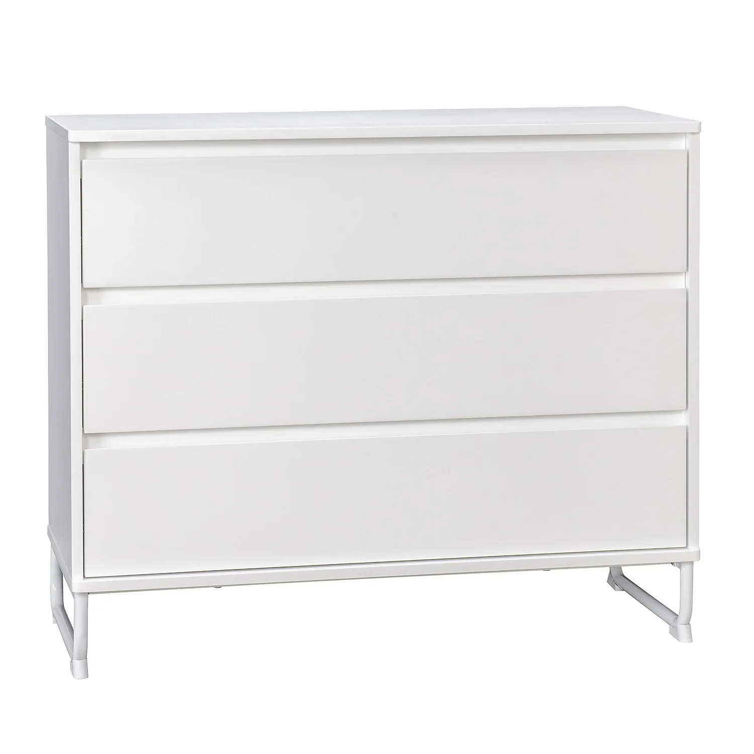 Hello Milo. Perfect for busy, everyday life in your home, the Milo chest of drawers has an easy modern vibe. Three handleless drawers give this piece smooth lines while the white lacquer finish keep Milo looking clean and fresh. It’s raised on sturdy, metal ski legs to give a sleek finish.