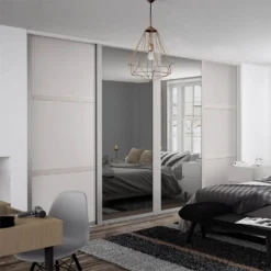 Shaker 4 Door Sliding Wardrobe Kit White Panel / Mirror With White Frame (W)2290 X (H)2260mm