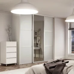 Shaker 3 Door Sliding Wardrobe Kit White Panel / Mirror With White Frame (W)1680 X (H)2260mm