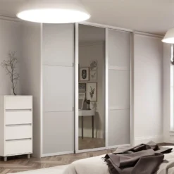 Shaker 3 Door Sliding Wardrobe Kit Dove Grey Panel / Mirror With Dove Grey Frame (W)2136 X (H)2260mm