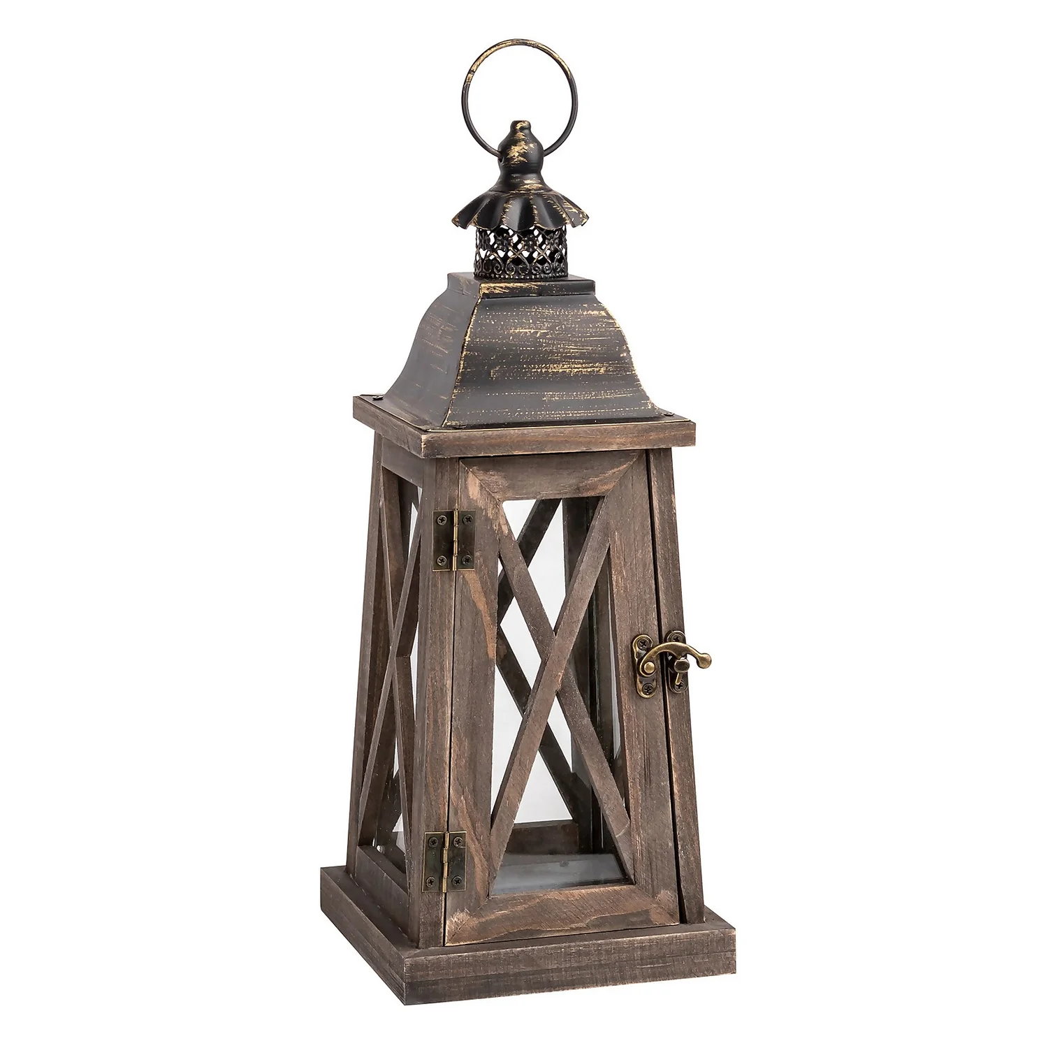 - Elegant lantern with pattina finished metal